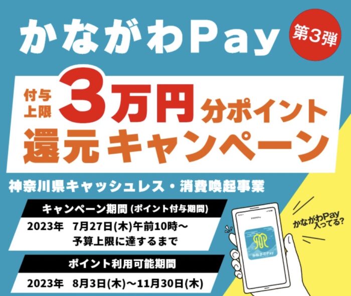 キャッシュレス決済をかながわPay経由でお会計して頂くと、お支払い金額の20%ポイント還元がされます。